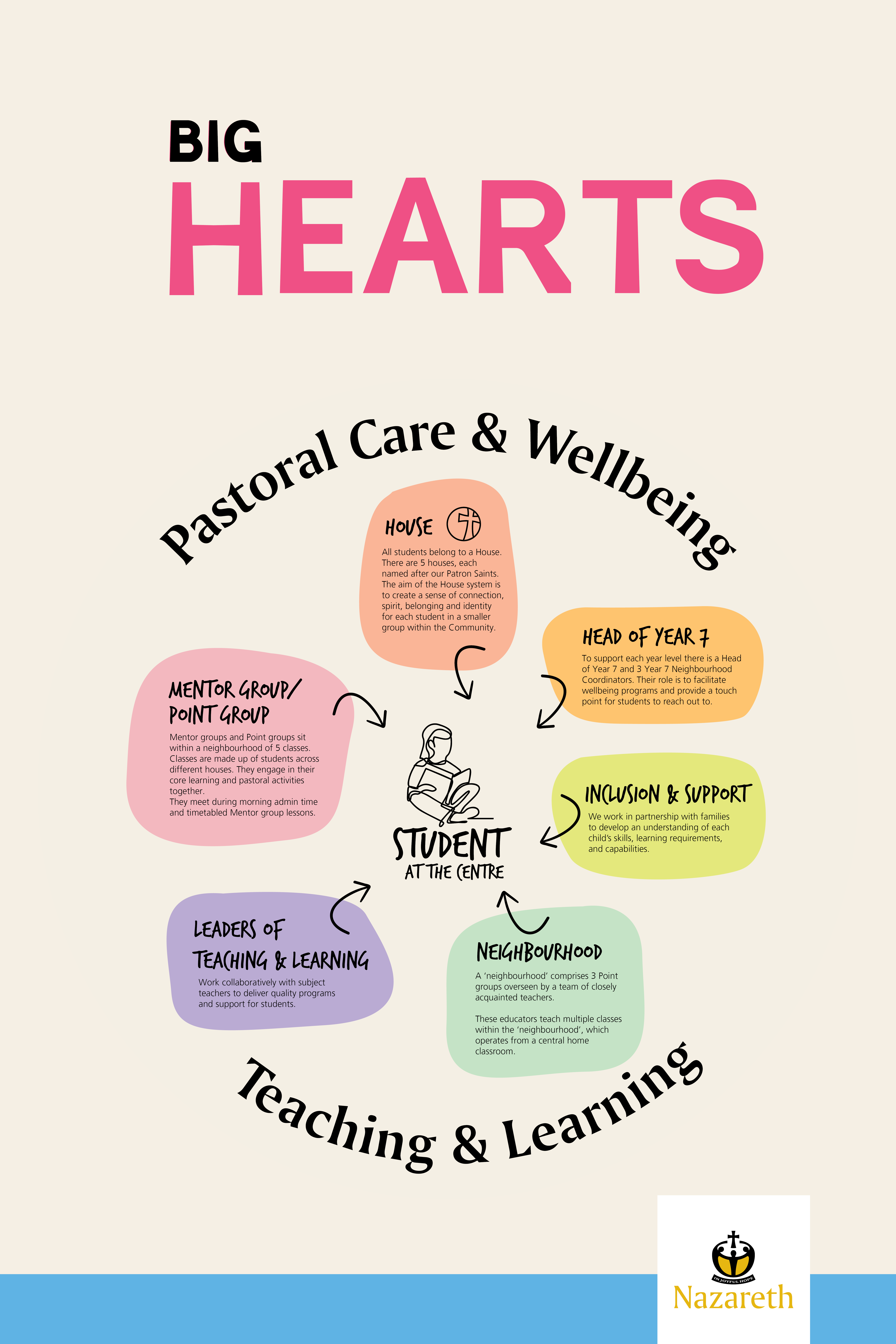 At Nazareth, we are committed to the education and wellbeing of all community members in all dimensions of life. Our school may be large in numbers, but we ensure that all students feel a strong sense of belonging.