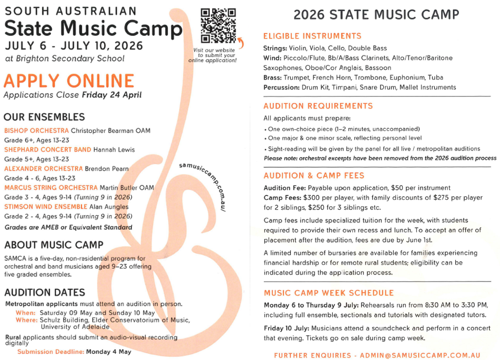Rehearsals are on Tuesday mornings 8:00-8:45am. Please ensure you arrive at 7.55 for an 8am start.